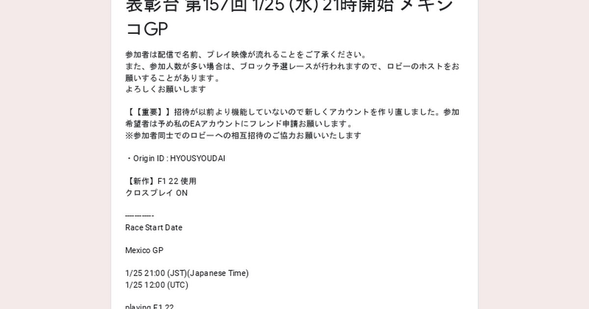 表彰台 第157回 1/25 (水) 21時開始 メキシコGP